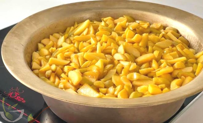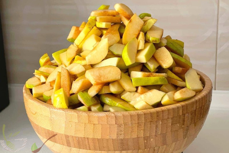 Айву миємо, розрізаємо, видаляємо насіння. Очищаємо від шкірки, нарізаємо невеликими шматочками або часточками.