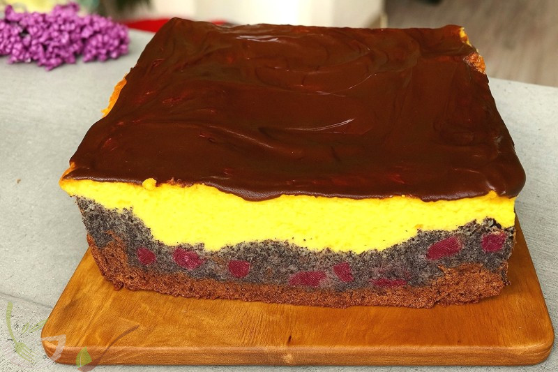 Королівський сирник з маком та вишнею на шоколадному коржі